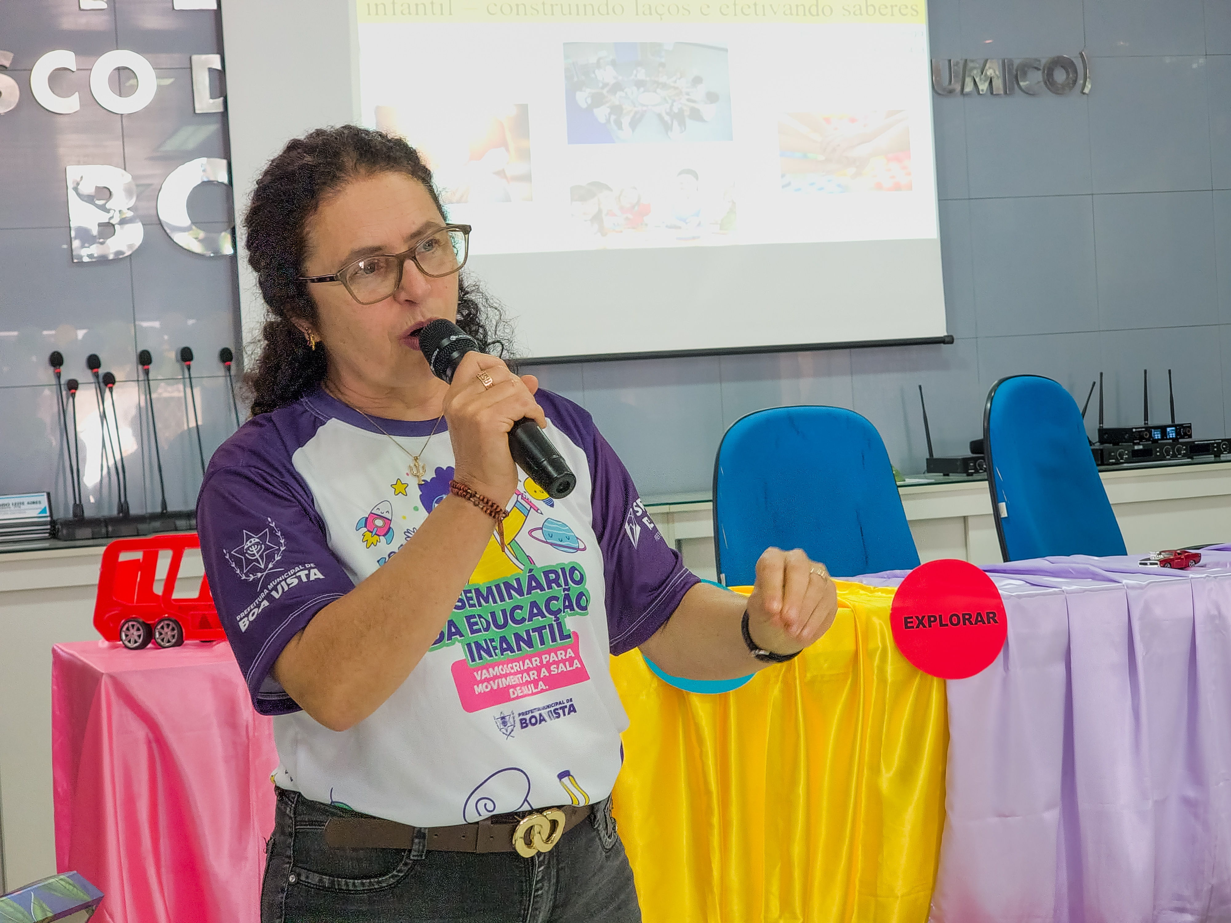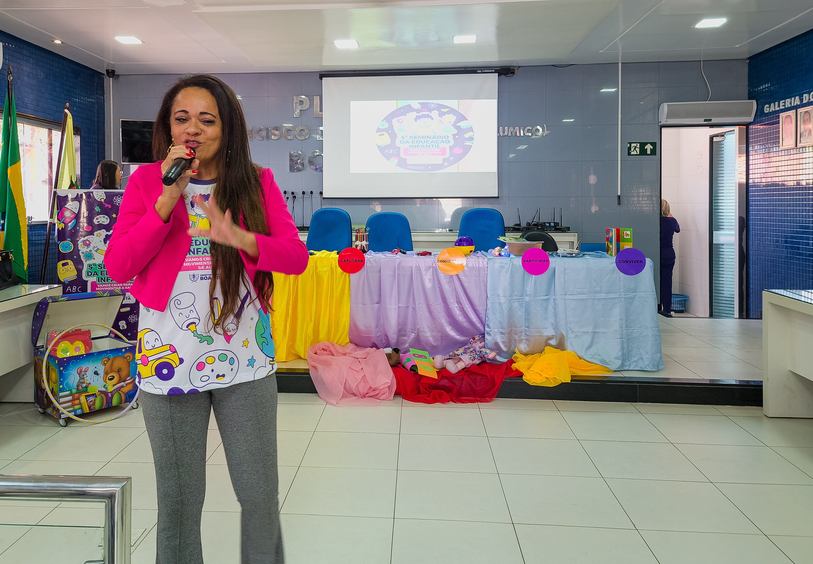 Aconteceu durante todo o dia desta sexta-feira (25), o 5° Seminário da Educação Infantil na Câmara Municipal de Vereadores promovido pela Secretaria de Educação. O evento discutiu o tema “Vamos criar para movimentar a sala de aula”, por meio de palestras, rodas de conversas, sorteio de brindes e alimentação integral para os professores da educação infantil do município, a fim de desempenhar dentro das escolas municipais formas de educar dinâmica e afetiva.