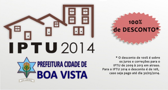 Os boavistenses que ainda não efetuaram o pagamento do Imposto Predial e Territorial Urbano de 2014 terão até esta sexta (30) para pagarem com desconto de 10%. Através de lei, o prefeito Edvan Leite concedeu ainda desconto de 100% nos juros de quem está com o IPTU atrasado.