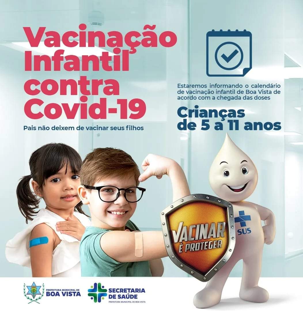 No município de Boa Vista as ações de conscientização e divulgação do calendário de vacinação contra Covid-19 foram ampliadas. O público alvo desta campanha são as crianças entre 5 e 11 anos de idade.