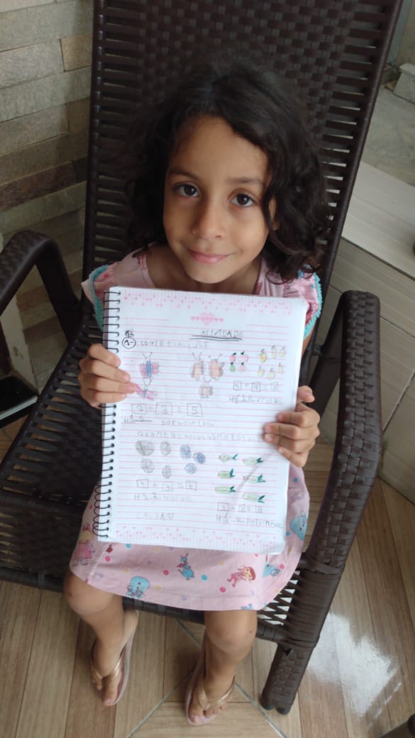 Para Andréa Macêdo, mãe da Letícia do Pré 2, e da Lizandra do sétimo ano, as atividades estão sendo desenvolvidas tranquilamente. “As tarefas estão tendo um bom desenvolvimento. A professora manda as atividades pelo WhatsApp e toda a família ajuda. Gravamos vídeos, tiramos fotos, fazemos as atividades no caderno e enviamos para a professora. E até agora, graças a Deus, está sendo muito bom, muito proveitoso. Com as minhas filhas não estou tendo dificuldades”, afirma. O medo das incertezas relacionadas ao futuro também se faz presente na fala dessa mãe quando ela diz que “se fossem aulas presenciais, eu não teria coragem de mandar as minhas filhas pra escola”, desabafa. Sentimento que, infelizmente, se estende por muitas famílias.